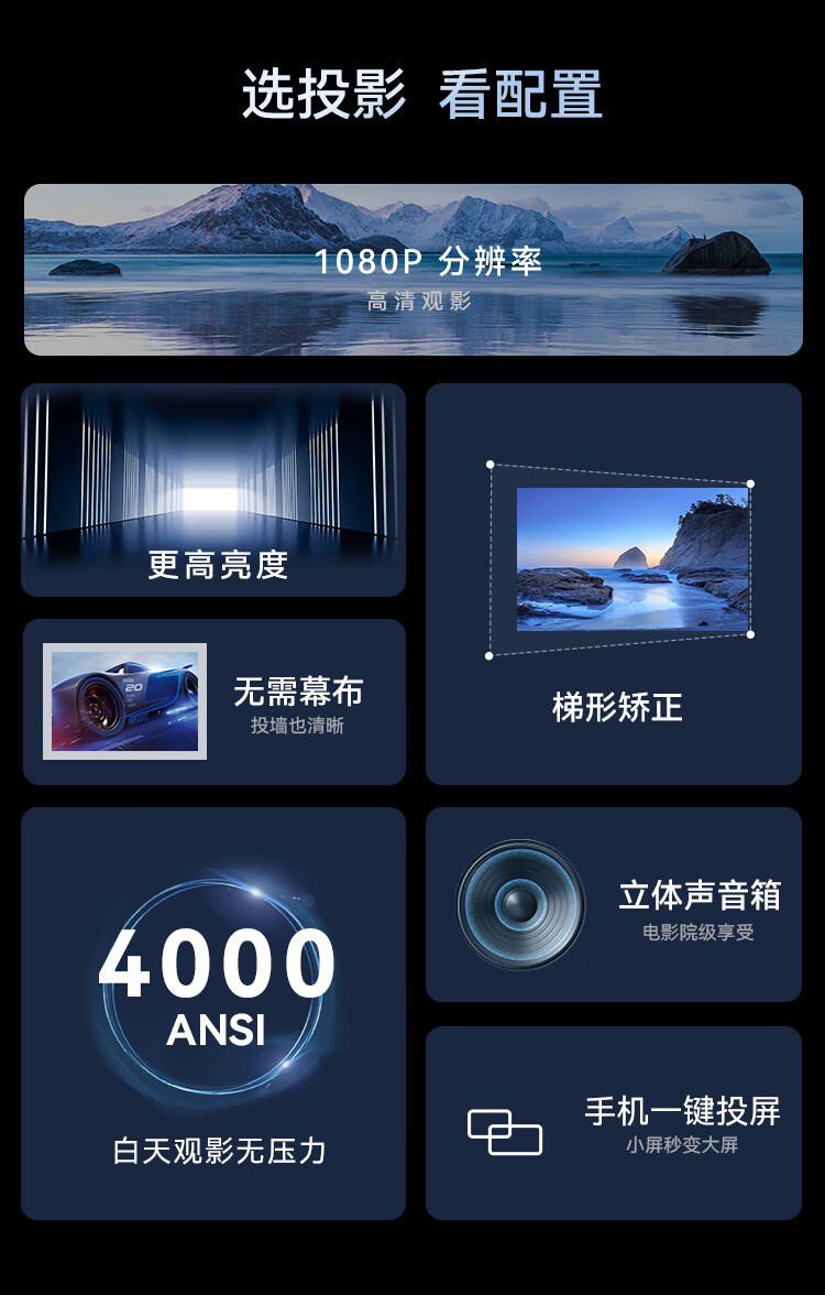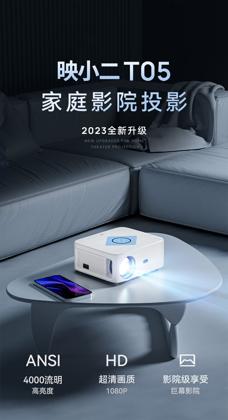 商品名稱:映小二旗艦新款投影儀家用家庭影院4K超高清白天直投大屏幕辦公室會議室投影機手機無線投屏吊裝投墻