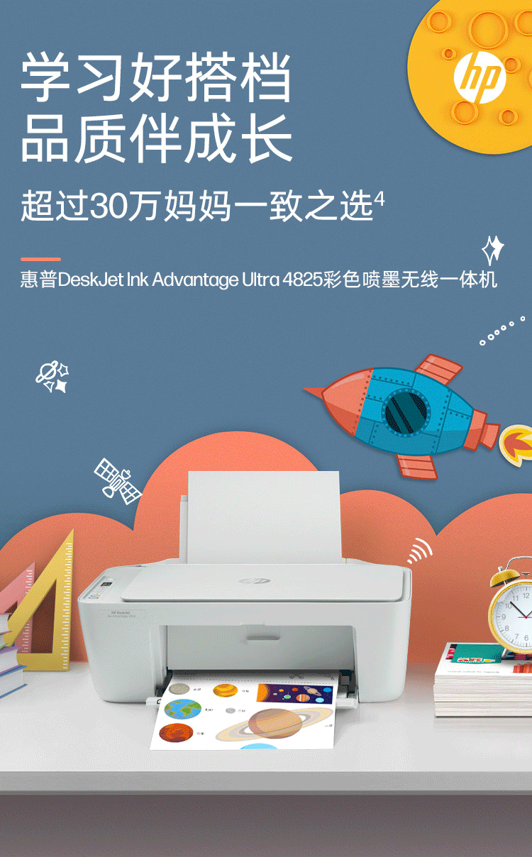 惠普(HP)DJ 4825彩色無線噴墨打印機(jī)家用 大印量低成本照片打印機(jī)學(xué)生家用 微信打?。ù蛴?復(fù)印 掃描)