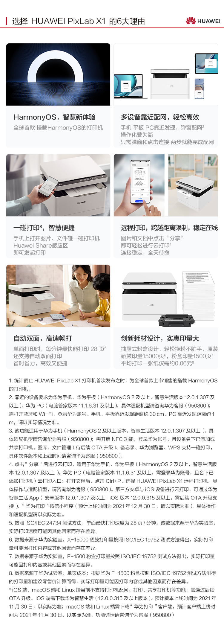 華為(HUAWEI)黑白激光多功能打印一體機(jī) 辦公商用學(xué)生家用/打印復(fù)印掃描三合一/自動(dòng)雙面/無線打印 PixLab X1