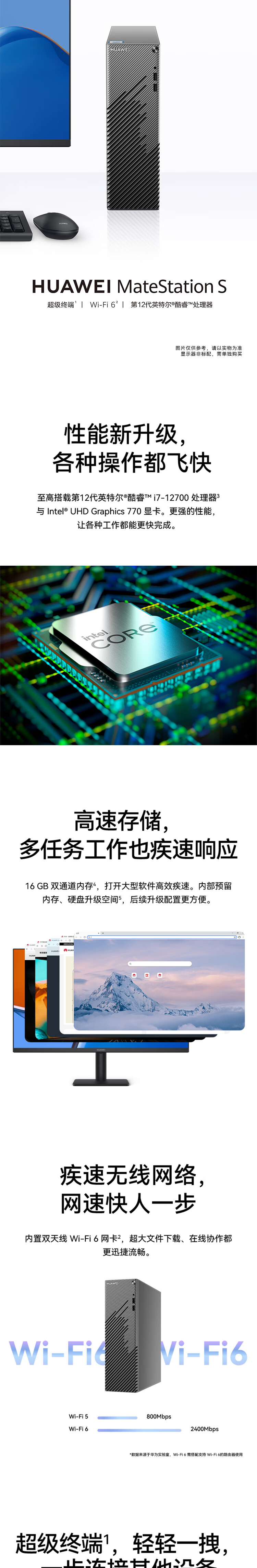 商品名稱:華為HUAWEI MateStation S 12代酷睿版商務(wù)臺式機電腦整機(i5-12400/16G/256GSSD+1THDD集顯 WIN11)23.8英寸