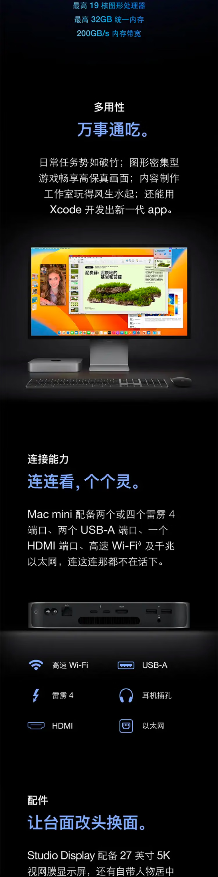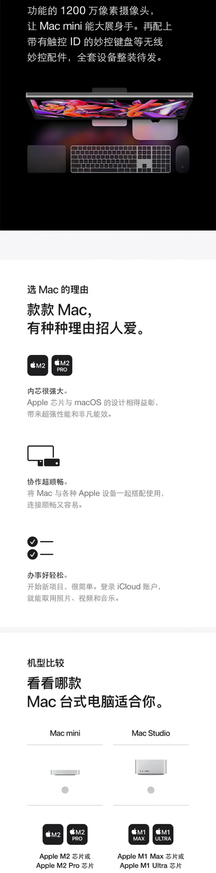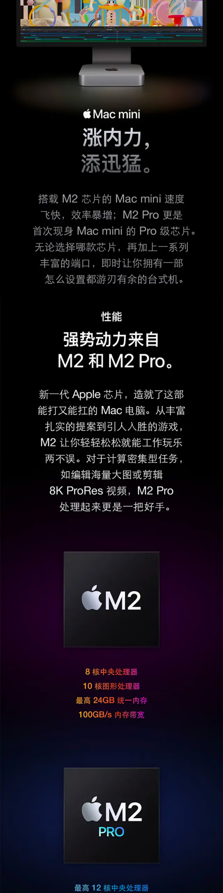 商品名稱:蘋果(Apple)Mac mini 2023新款m2芯片迷你臺式電腦蘋果主機(jī)盒子 M2芯片【8核+10核】8G-256G