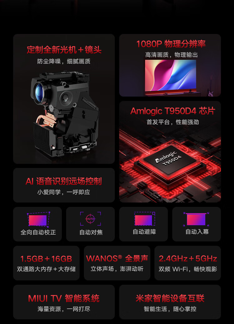 小米 Redmi 投影儀 Pro 家用投影機 智能家庭影院(1080P物理分辨率 全向自動校正 自動避障 米家智能 )
