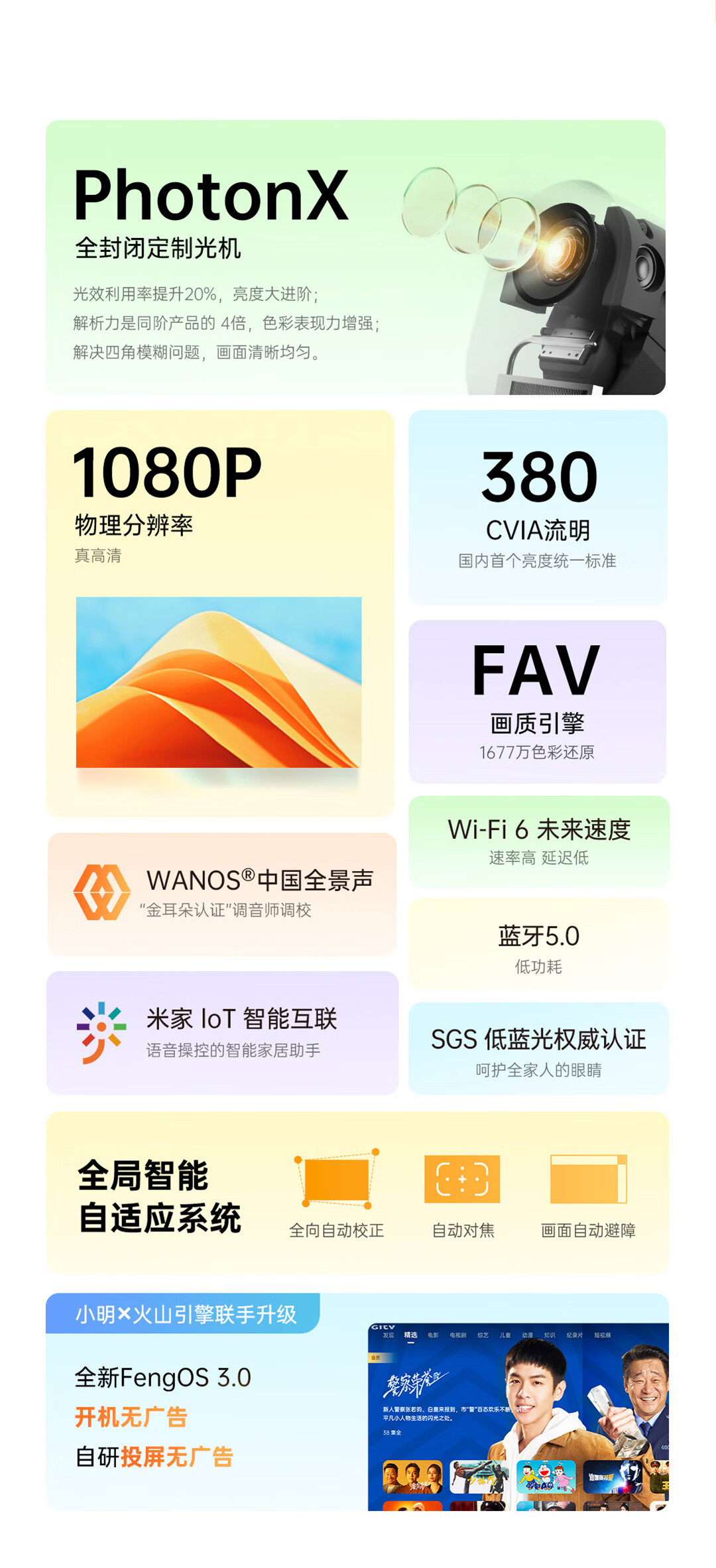 商品名稱:小明 Q3 投影儀家用 投影機 超高清家用臥室投影機 智能家庭影院(380 CVIA流明 全自動校正 1080P分辨率)